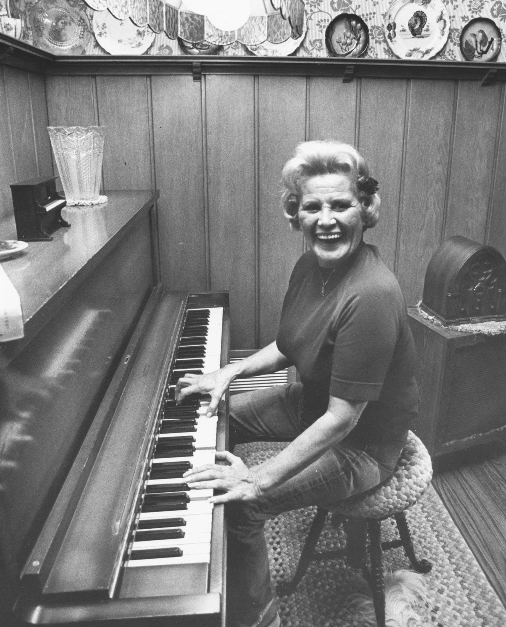 • Character-defining features include wood-beamed ceilings, wood-paneled walls with picture ledges, and original wood flooring, all in a rich walnut color. Seen throughout is a floral wallpaper on both the walls and ceiling installed in the 1960s.
